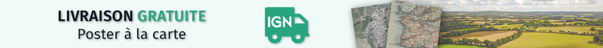 Créez en ligne un poster personnalisé à partir des fonds cartographiques et historiques de l’IGN. Personnalisez l’emprise, l’échelle, le format et ajoutez vos données personnelles. Recevez chez vous, votre poster IGN sur-mesure.