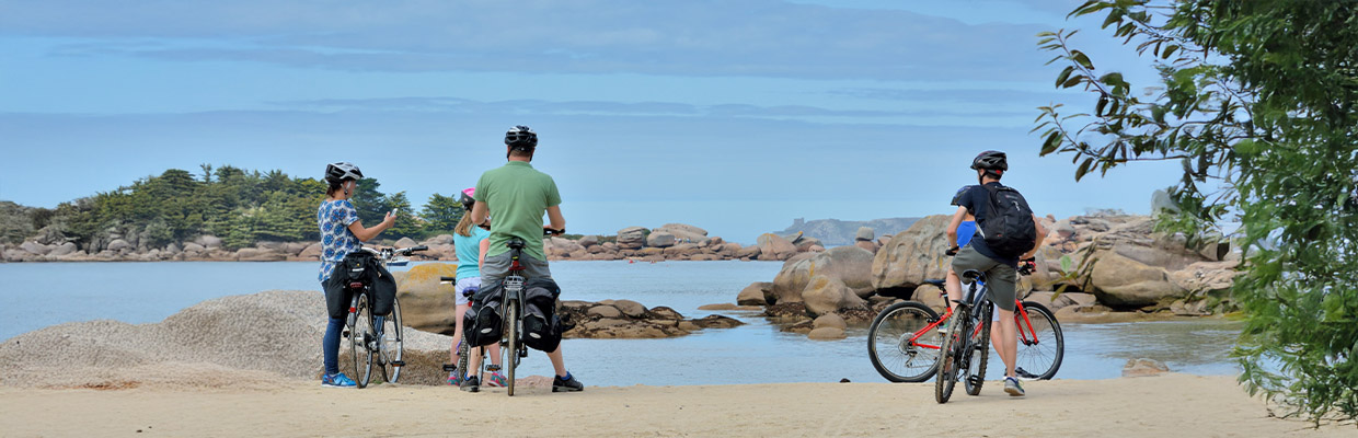 Une famille en randonnée vélo sur la côte de granit rose en Bretagne - ©aquaphoto - Adobe Stock