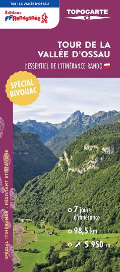 Cette topocarte s'appuie sur le GRP® Tour de la Vallée d'Ossau. Un itinéraire en boucle de 99 km au départ de Louvie-Juzon. Une itinérance sportive (6 400 m de dénivelées !) en basse et moyenne montagne pour amateurs de paysages contrastés : pâturages d'altitude, roches de granit, forêts, cimes et lacs de montagne. Une itinérance spécialement conçue pour le bivouac (3 étapes sans hébergement mais avec emplacement de bivouac).