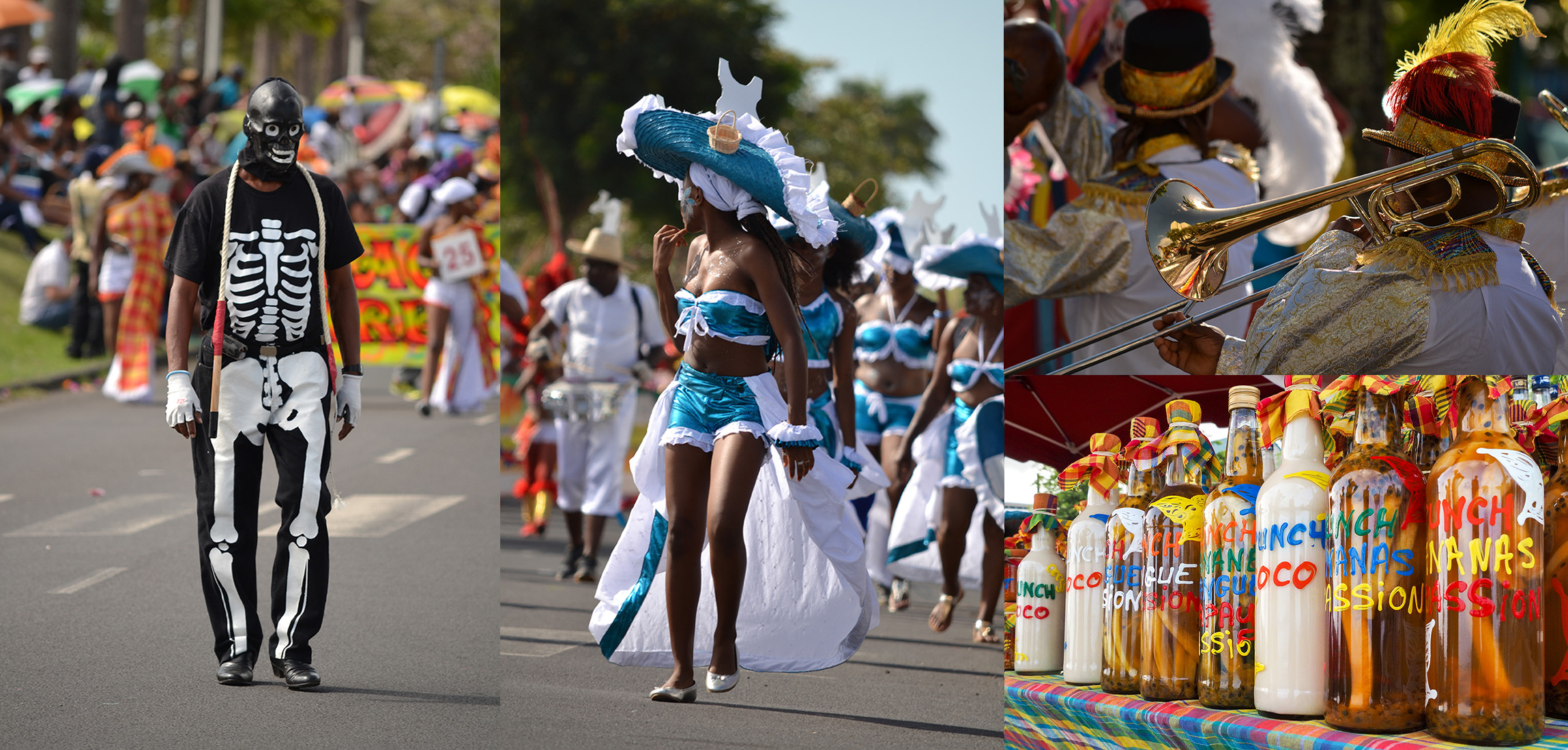 Les Antillais aiment les réjouissances et sont très attachés à la vie sociale. Les familles y tiennent la première place, et le Carnaval est l’occasion d’une grande fête, haute en couleurs, aussi bien dans les costumes (le madras notamment) que dans la célébration. D’influences occidentales, africaines, indiennes, asiatiques et bien sûr amérindiennes, la cuisine est aussi savoureuse qu’épicée. Durant la semaine que dure les festivités, c’est un maelstrom de déguisements colorés, de danses endiablées et de musiques traditionnelles. Un seul mot d’ordre : aucune restriction dans ces bacchanales dont les origines sont païennes. Le paroxysme est atteint lors du « jour gras » où sera brûlé le Roi Vaval, marionnette géante, fabriquée durant des semaines, dans un secret total. Pour cette dernière parade, les tenues en noir et blanc sont de rigueur.
