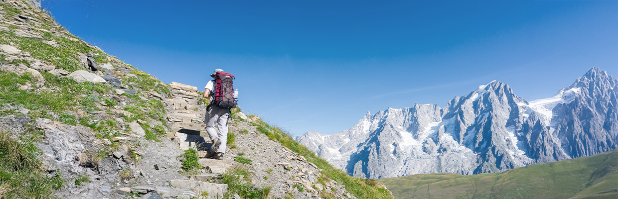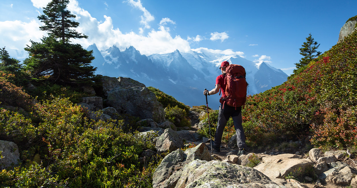 Randonnée dans les Alpes, avec le Mont Blanc en arrière-plan ©fabio lamanna - Adobe Stock