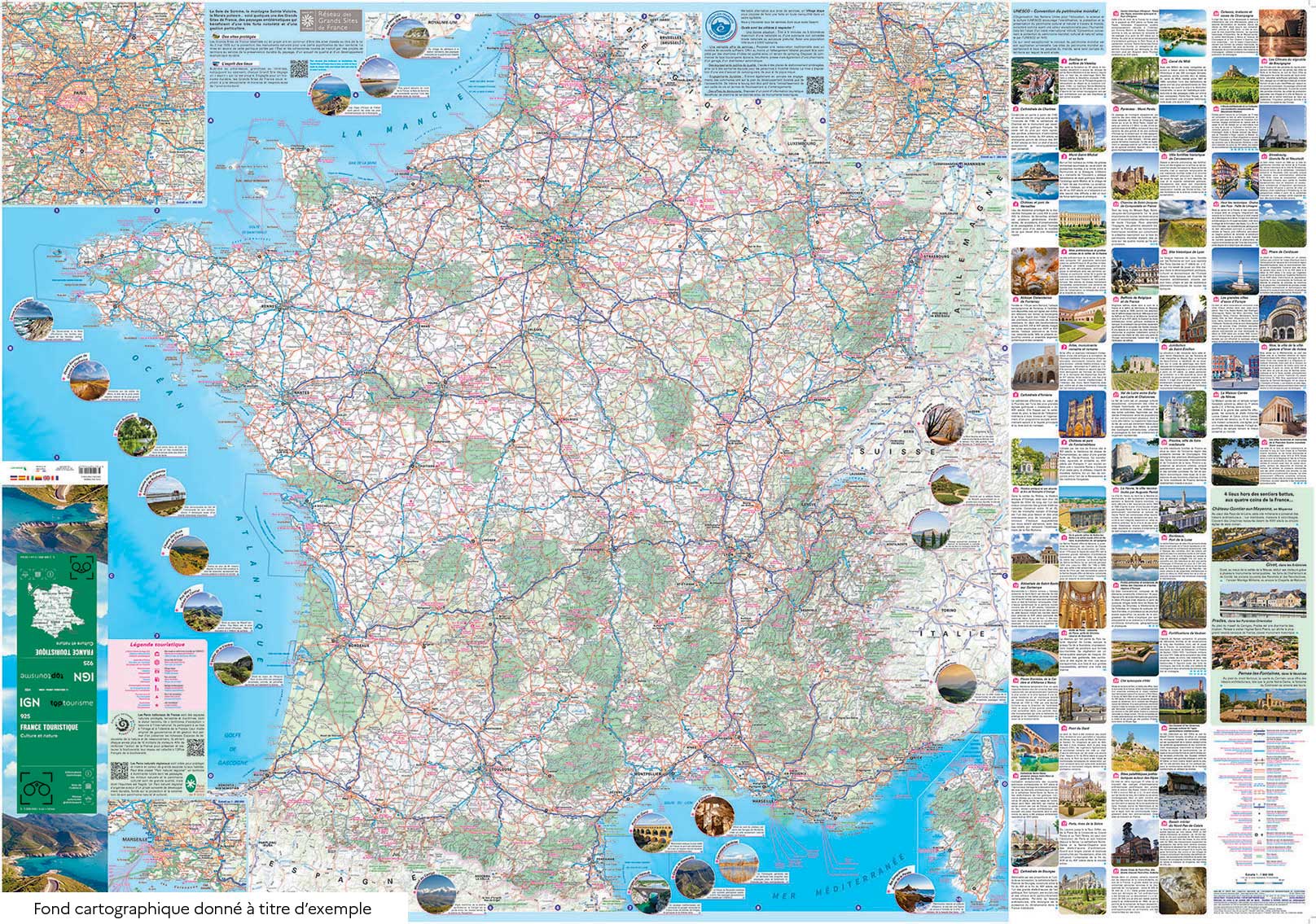 L’enrichissement et une nouvelle présentation des informations touristiques, pour une lecture rapide et claire des sites culturels du territoire et la mise en avant des parcs naturels nationaux et régionaux, grâce à des surfaces mise en avant, pour une identification facile des richesses naturelles. L'échelle reste inchangée, pour une lecture confortable : 1 : 1 000 000, soit 1 cm = 10 km