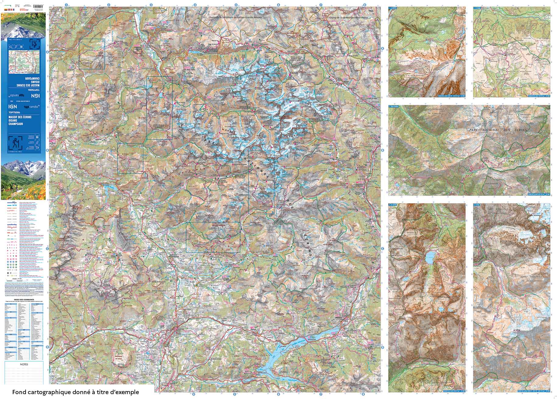 Toutes les informations nécessaires à la randonnée y sont également représentées : tracés des GR® et GR® de pays, courbes de niveau, points cotés, zones rocheuses, glaciers mais aussi gites d’étapes et refuges.
